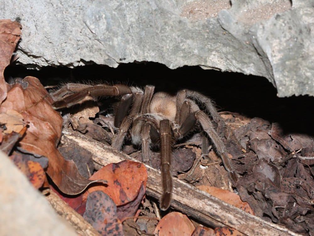 Defence: threat posture with chelicerae displayed and a characteristic whistling stridulation; rapid biting if pressed.
