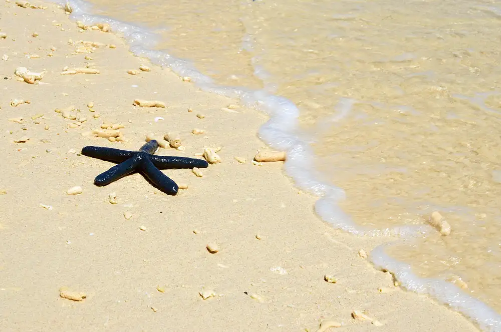Vivid blue; cylindrical arms; grazes biofilms/detritus; strong autotomy/regeneration; broadcast spawning.