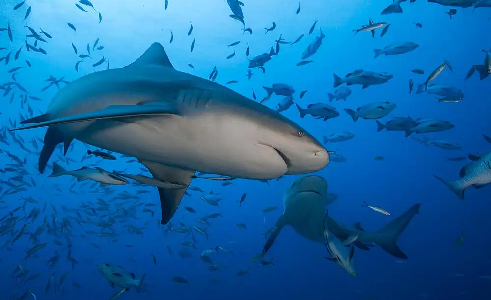 Bull shark (Carcharhinus leucas) is a large coastal requiem shark famous for its ability to live for extended periods in low‑salinity and even fresh water. It regularly ascends river systems and may occupy inland lakes (e.g., Zambezi River, Lake Nicaragua). Its proximity to human use areas elevates conflict risk. Global IUCN status: Near Threatened (NT).