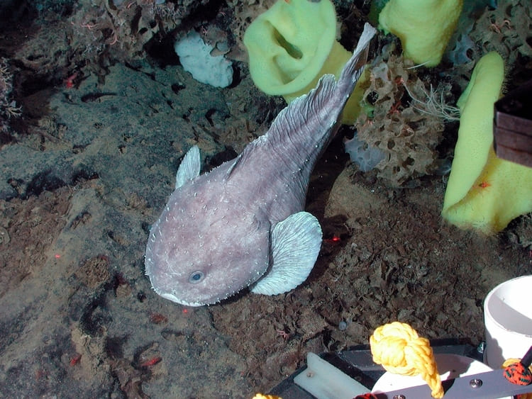 Bulbous head, soft tissues at depth; collapses into the iconic “blob” when brought to the surface.