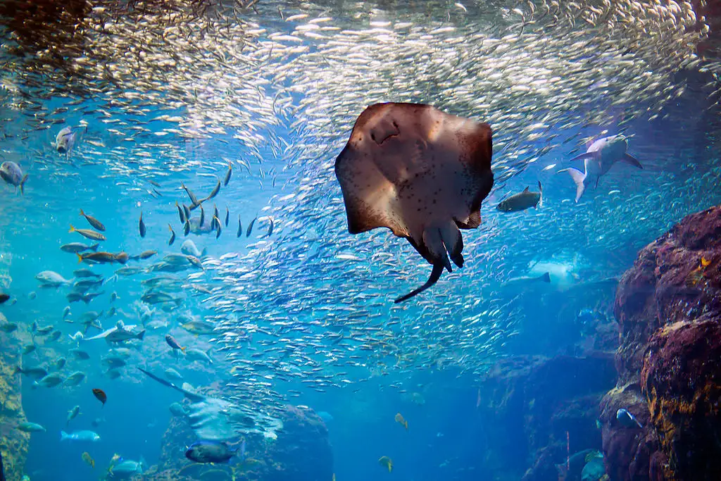 Rajiformes—in modern usage typically referring to the skates within the batoids—differs from stingrays by being oviparous and lacking venomous tail spines. Skates often bear dermal thorns on the back and tail and lay the iconic horned egg capsules known as “mermaid’s purses.”