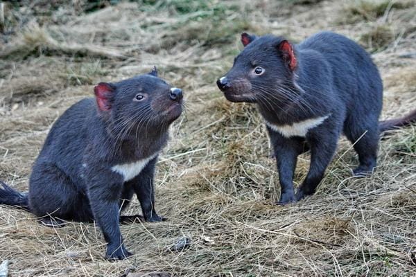 Carnivorous marsupial; powerful bite; scavenger; nocturnal; impacted by DFTD.