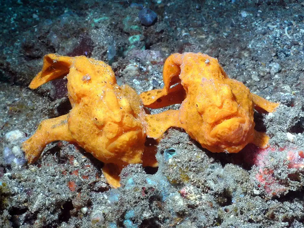 Q2. Dangerous to people? No—frogfishes are small ambush predators; avoid handling to prevent stress or injury.