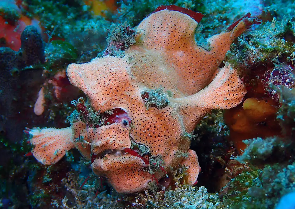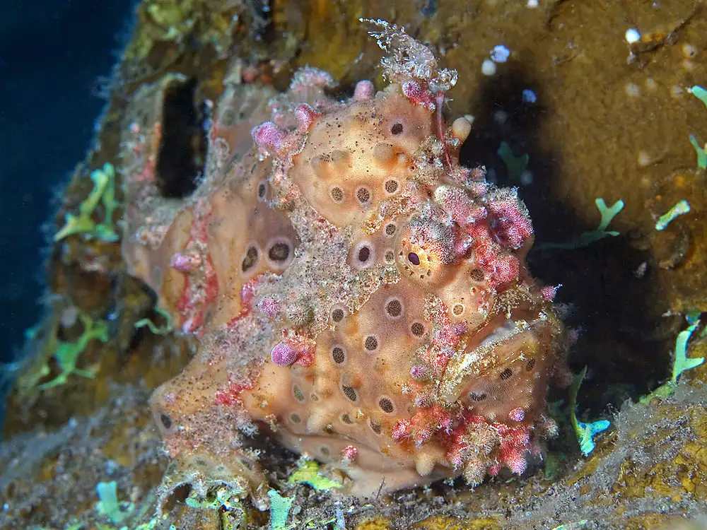 Robust pectoral fins used for propping/walking; fleshy lobes aid camouflage.